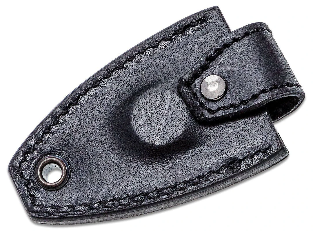 Each includes a leather sheath with a magnetic closure system so the knife can be carried both in the pocket and as a neck knife thanks to the leather cord is included in the package. The sheath is ambidextrous both for right and left-handed persons.