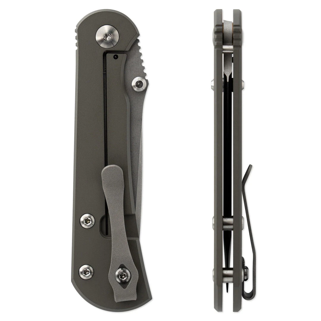 With an extra-high bevel grind that provides plenty of sharpening life, this frame lock folding knife uses premium 6al-4v titanium, precision-machined handle scales with a CPM S35VN blade. We custom-make every screw and back spacer in our manufacturing facility, also using 6al-4v titanium. The blade rides on phosphor bronze washers, giving it a smooth, controlled folding action, and our signature deep carry titanium pocket clips allow the knife to sit lower in the pocket for extra comfort when carrying.