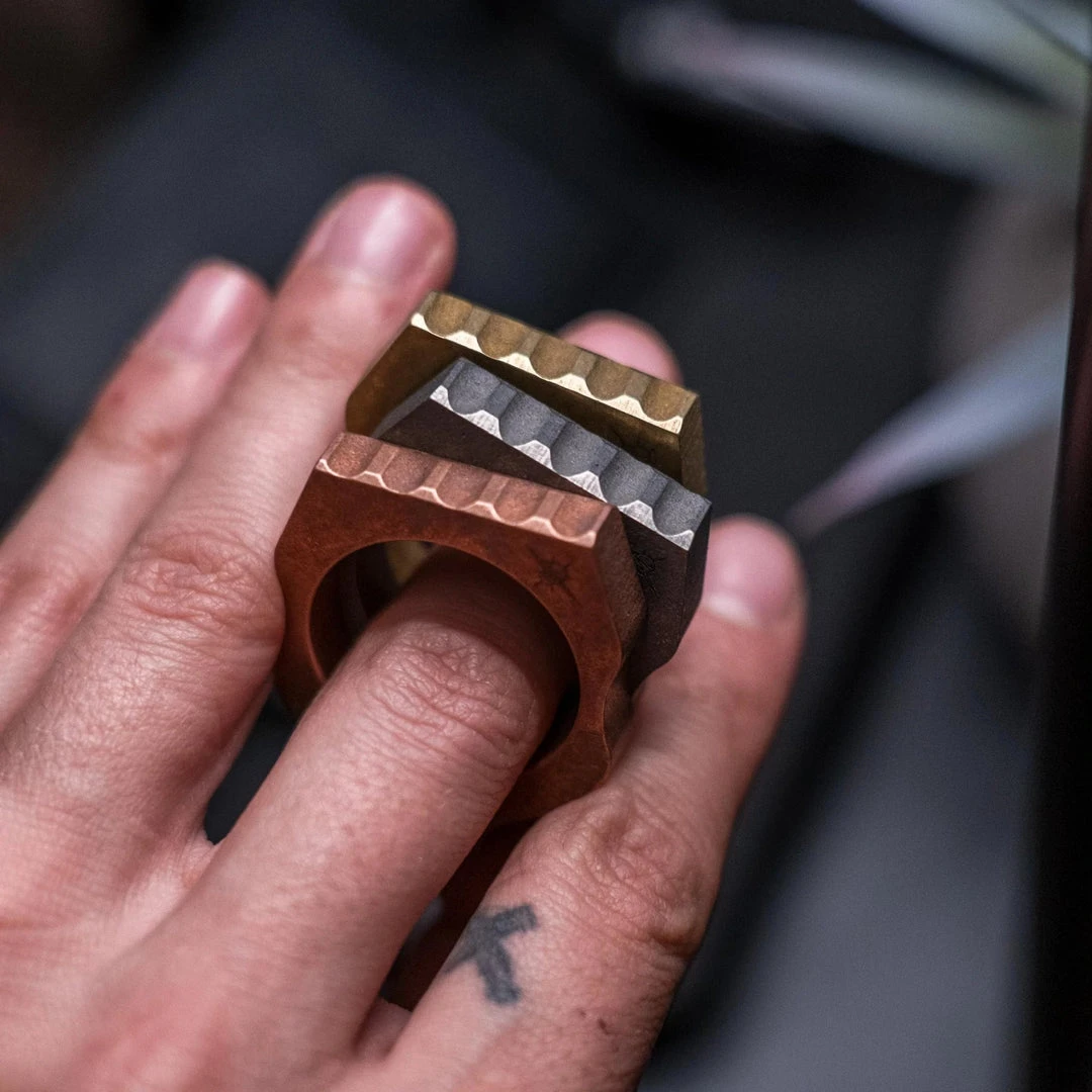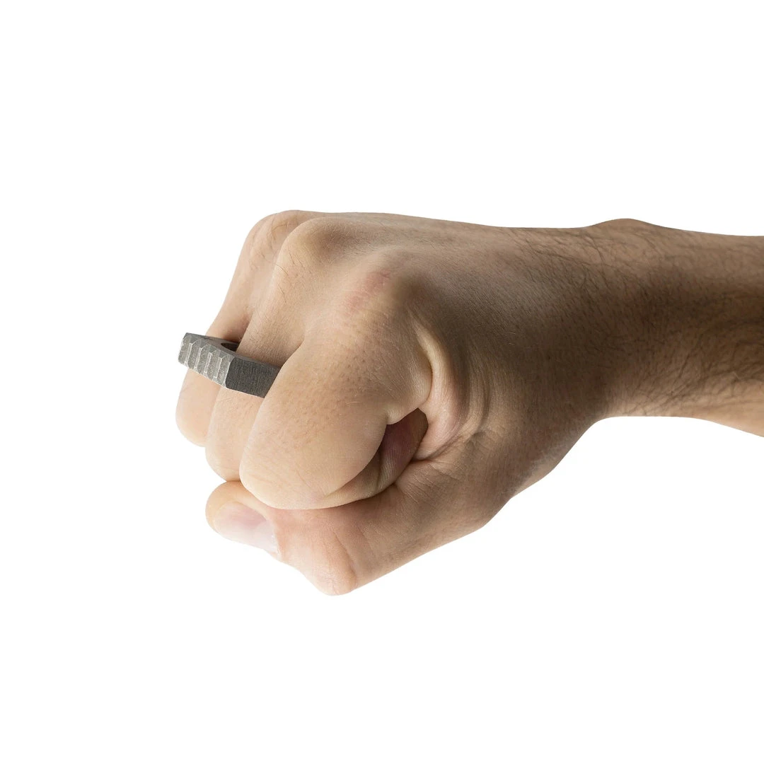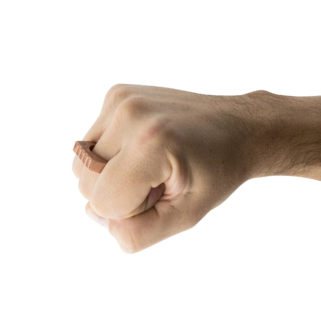 Designed to be a natural extension of the hand, the Thumper keychain ring is the perfect lightweight non-edged pocket defense tool.ย With a Copper, Brass or Titanium construction, the Thumper is as deceptive and devastating as it is attractive. This tool is small enough to hang from your keys or a necklace but still provides the ability to punch through dense objects.ย