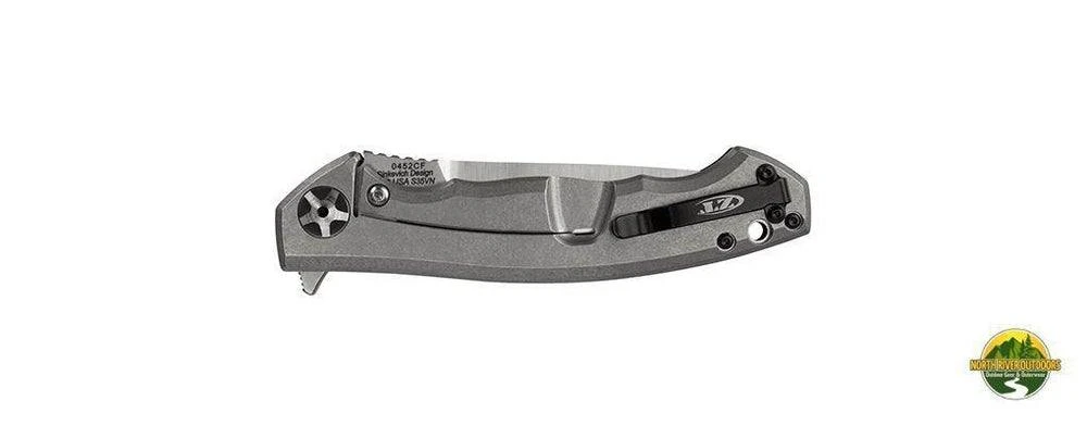To make this amazing knife more readily available, ZT has created a new-for-2015 version based on the original’s streamlined form and high-performance function. The 0452CF is the same size as the original 0454, but with a carbon fiber front scale and S35VN dual-finished blade. S35VN sharpens to a razor edge, holds it, and can be resharpened easily. The 0452CF opens as smooth as butter with the KVT ball-bearing opening system and built-in flipper. A titanium frame lock with hardened steel lockbar insert ensures solid lock up